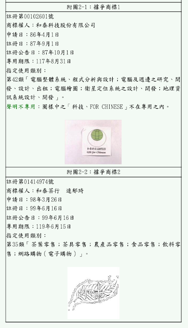 反觀據爭商標之商標權人即和泰科技股份有限公司、和泰商行連O琦,依該公司、商號之網站資料,和泰科技股份有限公司業務內容為全中文圖文整合之GIS、數值地圖繪製及GPS測量、套裝軟體設計、網頁程式設計、電腦繪圖、美工與印刷等服務;和泰茶行業務內容則為茶葉銷售服務,而無多角化經營之情形。