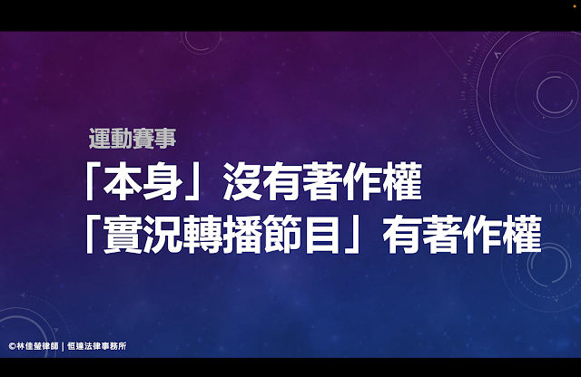 這是一個很棒的案例,來看運動賽事轉播的著作權議題。