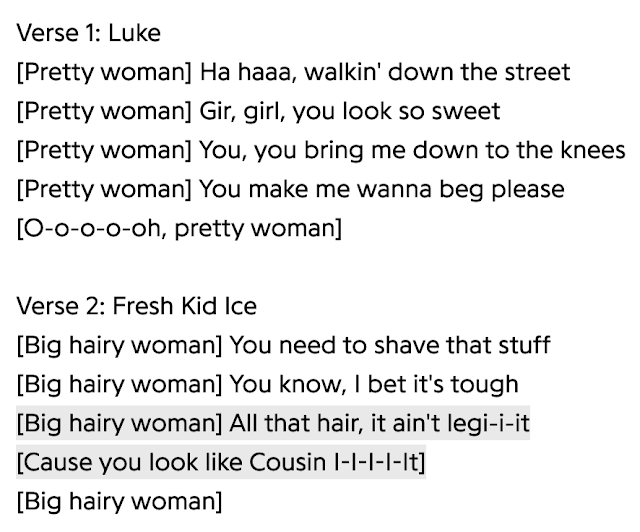 而被告「2 Live Crew」是一個美國饒舌團體,他們在1989年使用完全一樣的旋律,但搭配上kuso色色的歌詞,發行「Pretty Woman」這首歌(1989)。