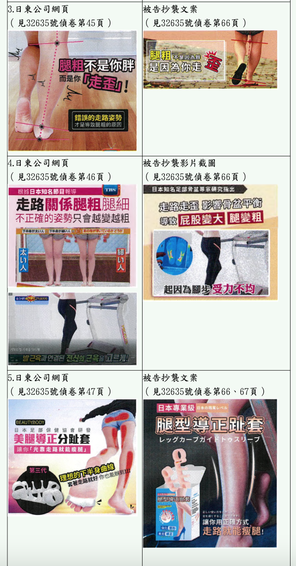 至附表編號4之文字「走路走歪」、「腿變粗」則係抄襲自告訴人之「走路關係腿粗腿細不正確的姿勢只會越變越粗」,是被告確有重製及公開傳輸附表編號3至5之文字。