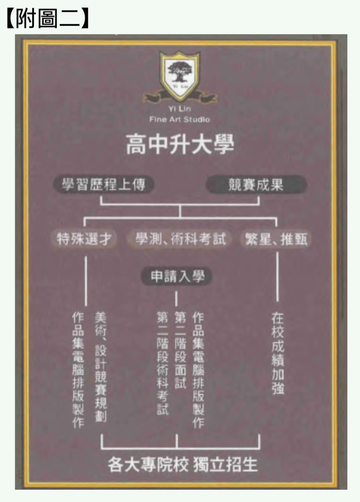 A美術補習班依據108新課綱針對美術系學生所特別繪製的臉書文案(左側圖片),